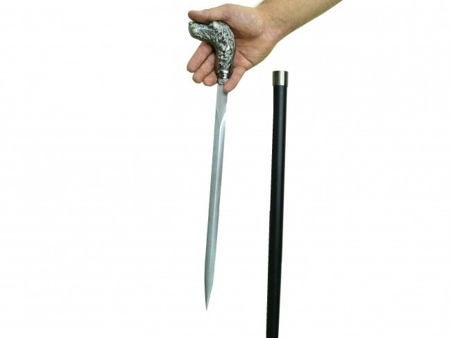 Великолепен (висок клас реплика) кух бастун с кинжал по традиционен британски модел. Исторически, модела бастун с куче е един от първите появили се непосредствено след Френската Революция. Конкретният модел, в частта ръкохватка е реплика на модел от средата на 19 ти век - Великобритания. Размери - бастун, с обща дължина около 1 ярд (92 см), със стоманено конусовидно тяло с диаметри 45 мм /19 мм. Стабилен, много здрав - сам по себе си сериозно оръжие.