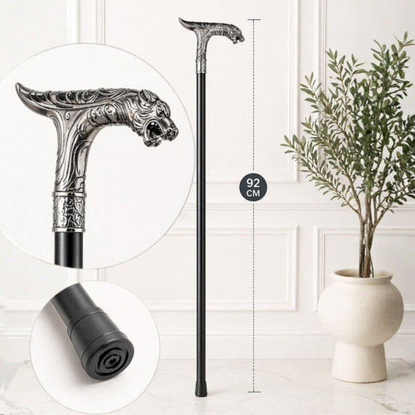 Елегантен и стилен бастун с кинжал и метална дръжка с глава на тигър