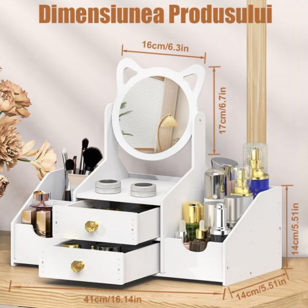 Мултифункционален органайзер с котешко огледало с 360-градусово въртене Lumera Beauty 2000