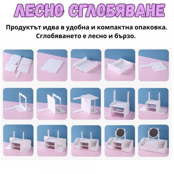 Умно разпределени отделения – за гримове, парфюми, серуми, бижута, аксесоари