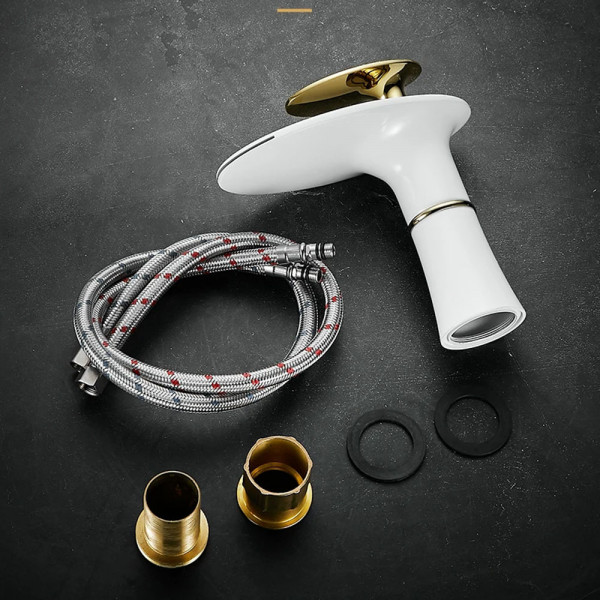 Елегантна смесителна батерия за кухня и баня, самостоящ, с меки връзки, WHITE, 2942-9
