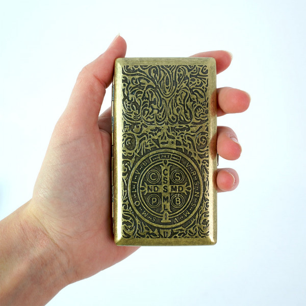 Елегантна табакера Gold Nostalgy Compact, цвят месинг и произволна случайна картинка според наличността.