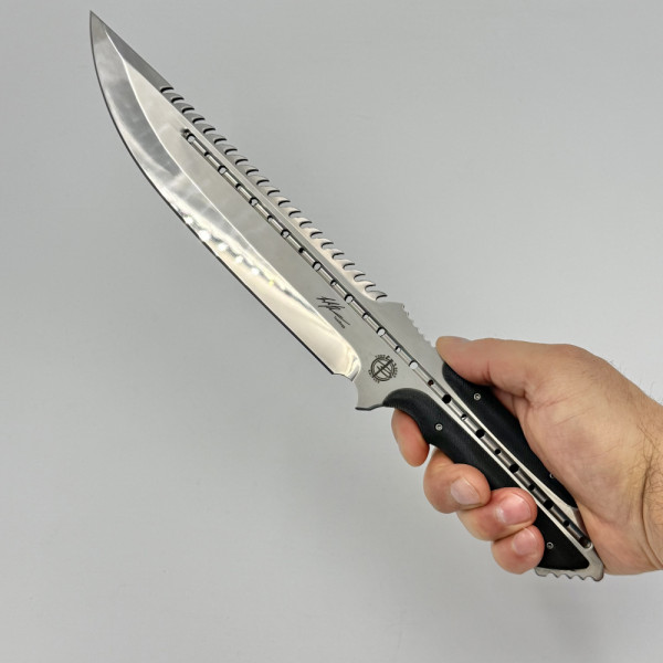 Извитият тактически фиксиран нож на американския майстор Тод Бег Tiburon е един от примерите за леко, но мултифункционално оръжие, което ще ви спаси във всяка ситуация. Тежи 480 г и идва в удобна кания за носене на кръста. Огледалното острие е направено от здрава стомана 9Cr18Mov с твърдост 59HRC и вдъхновено от тялото на акула. Фултанг колекционерското оръжие е изработено с фокус върху ергономията. Най-удобният нож в напрегната ситуация, който се движи и прерязва всяко препятствие като най-хидродинамично ефективното животно на планетата - акулата. Едновременно стилен и високо функционален. А дръжката от чирени от G10 ще ви даде сигурен захват, без значение от ситуацията.