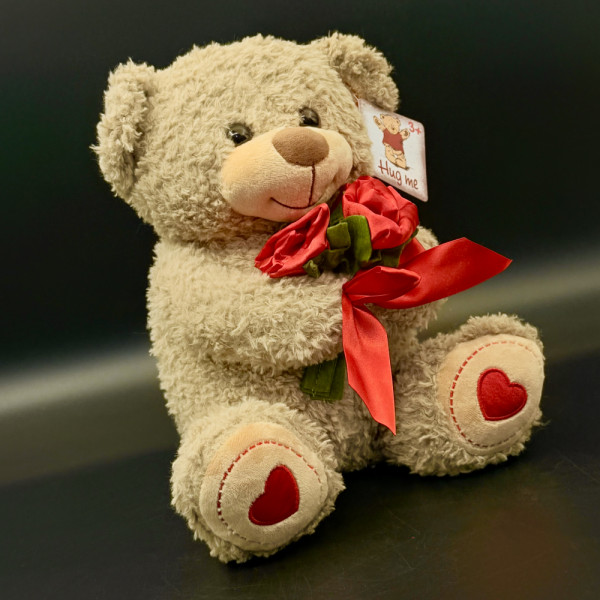 Голямо плюшено мече ТTEDDY ROSE, HUG ME с рози, вис. 28 см