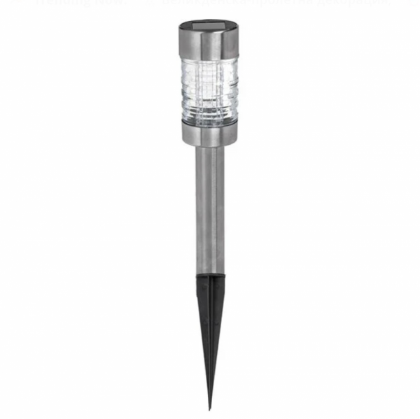 SOLARIS GARDEN LIGHT Соларна LED лампа за градина Осветете градината си без кабели и без разход за електричество. SOLARIS Garden Light използва слънчевата енергия, за да освети алеите, двора или цветните лехи с приятна LED светлина. През деня лампата се зарежда от слънцето, а при настъпване на нощта се включва автоматично. Елегантният метален дизайн и цилиндричната стъклена глава създават модерна визия, която се вписва перфектно във всяка градина. Стъкленият цилиндър добре разпръсква лъчите на LED диода и дава силна осветеност на балкона или градината. Масивното стъкло и металния обков дават висока степен на водоустойчивост и дълъг живот на лампата. Основни предимства ☀️ 100% соларно захранване Зарежда се от слънцето – без кабели и без разход за електричество. 💡 Автоматично включване Лампата се включва сама при настъпване на тъмнината. 🌿 Идеална за градина и двор Перфектна за осветяване на алеи, цветни лехи, тераси и дворове. 🔧 Лесен монтаж Забивате лампата в земята за секунди – без инструменти. 🌧 Подходяща за всякакво време Създадена за използване на открито. Технически характеристики Тип осветление: LED Захранване: соларен панел + акумулаторна батерия Материал: метал, стъкло и пластмаса. Цвят: сребрист Размери: Дължина над земята: 28,5 см Дължина под земята: 14,5 см Ширина: 6 см Подходяща за • градински алеи • дворове • цветни лехи • декоративно осветление • тераси и саксии Екологично и икономично решение Без кабели. Без електричество. Само слънчева енергия.