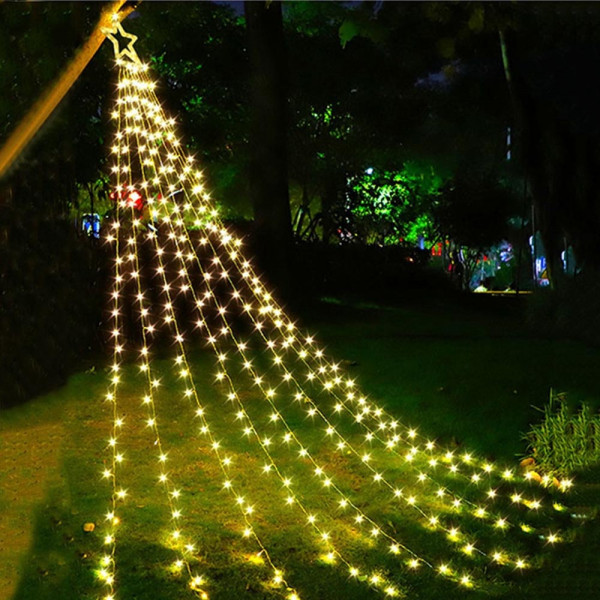 Коледни лампички ЗВЕЗДА с 9 гирлянда за елха или градинска украса, WARM WHITE, с няколко режима на работа и дистанционно управление