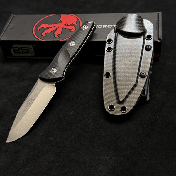 Компактен тактически / ловен нож MICROTECH Arbiter Compact, фултанг стомана M390, дръжка G10, кания карбон