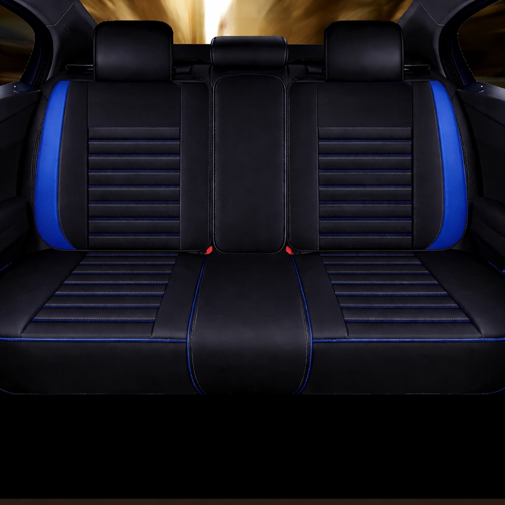 Комплект Луксозна универсална кожена тапицерия, Черна със син шев за Предни и Задни седалки
