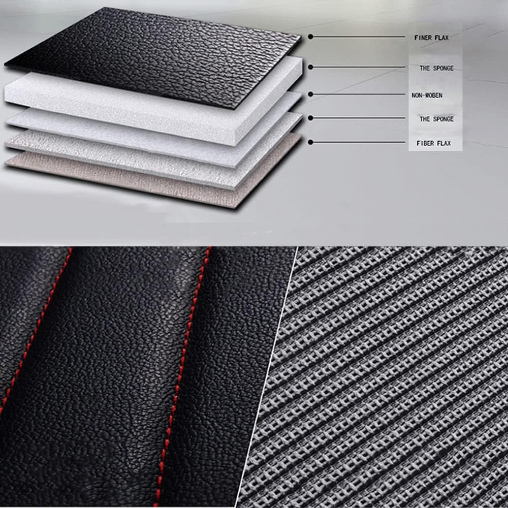 Комплект Луксозна универсална тапицерия кожа с текстил, Черна с червен шев за Предни и Задни седалки