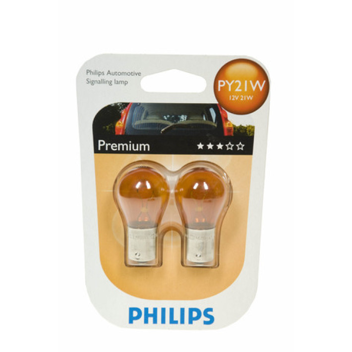Комплект от 2 броя крушки крушка (PY21W) 12V BAU15S 21W в блистер оранжева светлина Philips