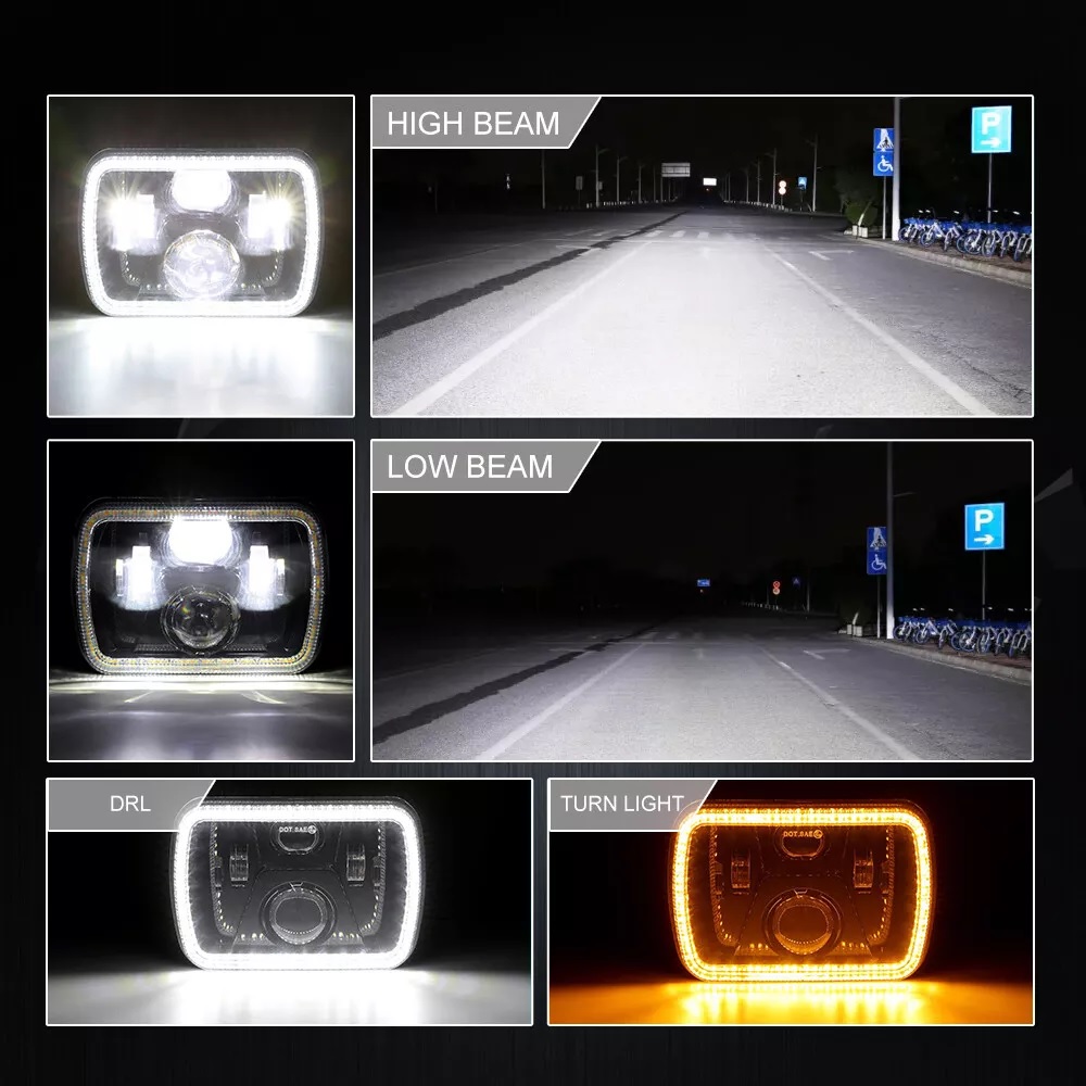 Комплект от 2бр. универсален 60W ЛЕД LED фар лампа халоген 12V-24V къси/дълги с DRL дневни светлини мигач бяло-жълто 20 x 14cm за АТВ джип мотоциклет камион трактор и др