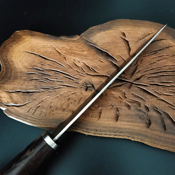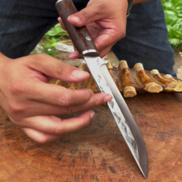 Чудесен ловен нож. Масивен размер, застава много добре в ръката. Дървената дръжка е много удобна. Олекотена конструкция, поставя се лесно и удобно в класическата отворена кания от естествена кожа. Много красиво и ценно изделие