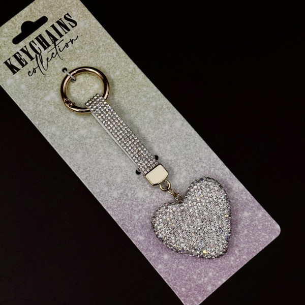 Красив кристален ключодържател CHRYSTAL HEART, безцветни кристали и метал