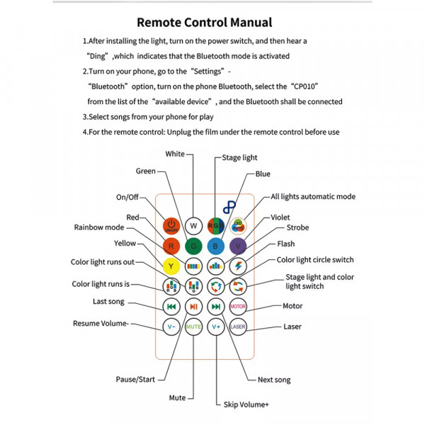 Нейните цветни светлини могат да бъдат сменяни според ритъма на музиката. Яркостта на лампата може да се регулира.