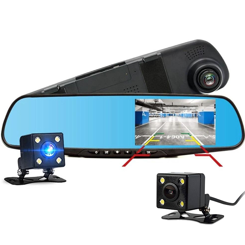 Огледало за здно виждане с 2 камери: преден видеорекордер и задна камера за паркиране. Много практична комбинация на огледало за автомобил с вграден монитор за задно виждане, на който свързвате камерата за задно виждане, която ще е от голяма полза при паркиране и същевременно използвате предната камера като регистратор. Комплекта предлага висококачествено изображение във FULL HD 1080P формат. Поддържа детектор за движение, цикличен запис и G-sensor. Запис на видео с високa резолюция 1080p и 120° ъгъл на виждане. Всичко необходимо в едно устройство. Кокво по-хубаво?