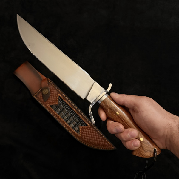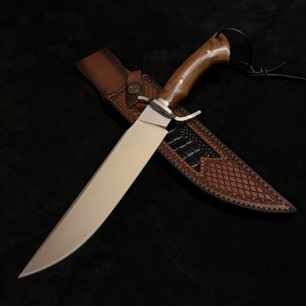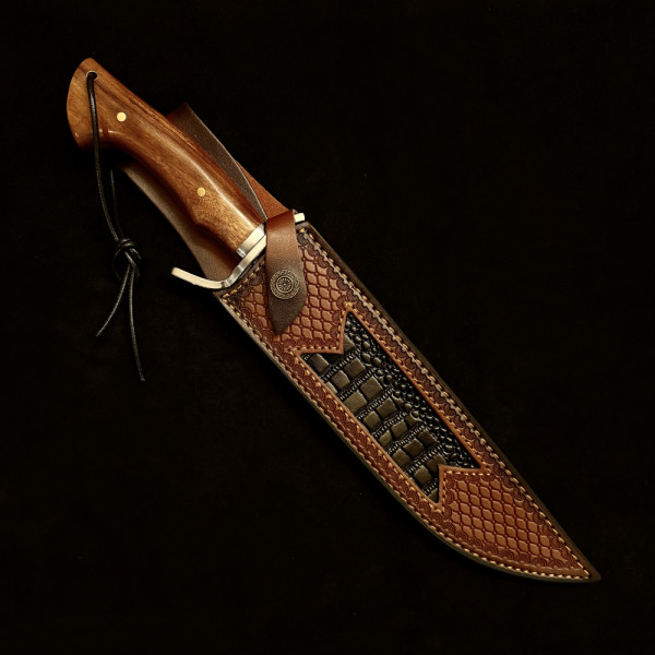 Огромен ловен/тактически нож WPKOPYA 373 DUNDEE, стомана 5Cr13Mov, дръжка орех, кожена кания