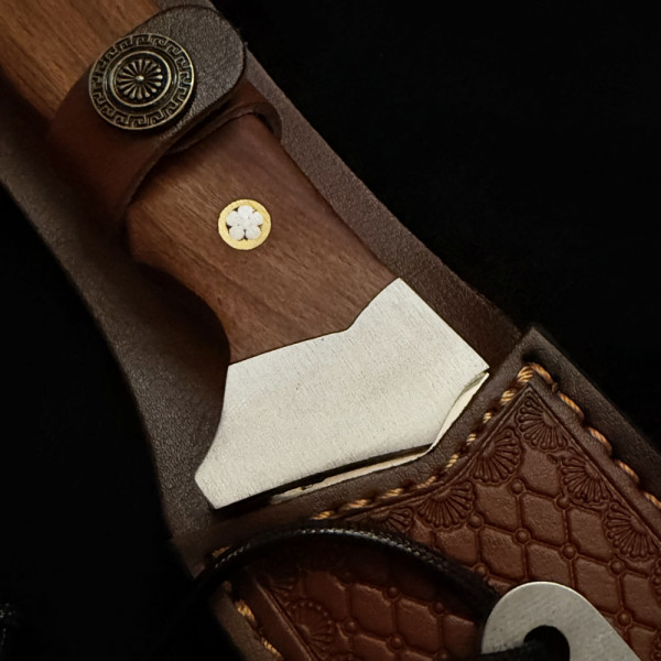 Кожена кания, шита и гравирана с джоб за точило
