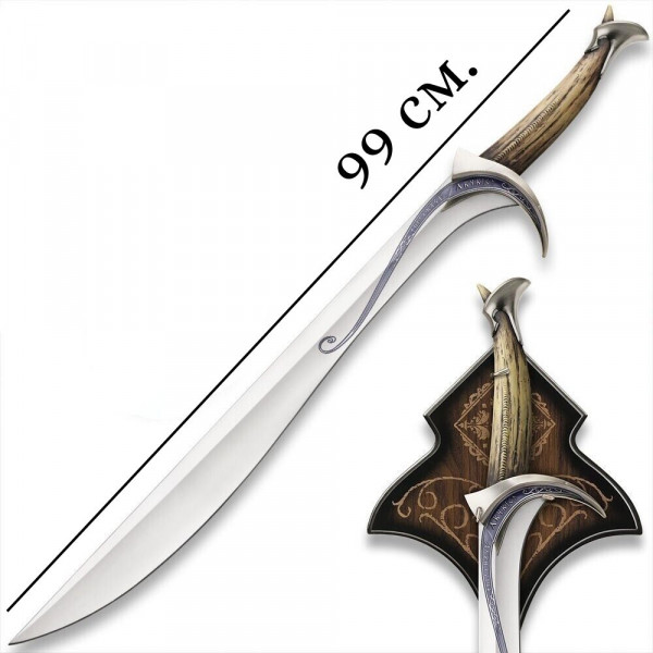 Реплика 1:1 на легендарния меч Оркрист на Торин Дъбощит от поредицата „Хобит“. Дължина на меча 99 см., незаточен, сувенирен, с дървена стойка за стена.