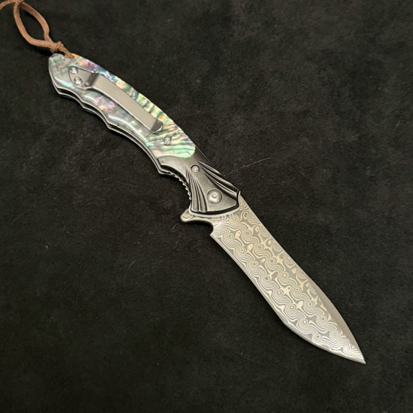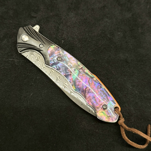 Полуавтоматичен сгъваем ТОП нож CORAL SCHELL DAMASKUS с палец за отваряне, стомана VG10 damask, дръжка G10, кутия
