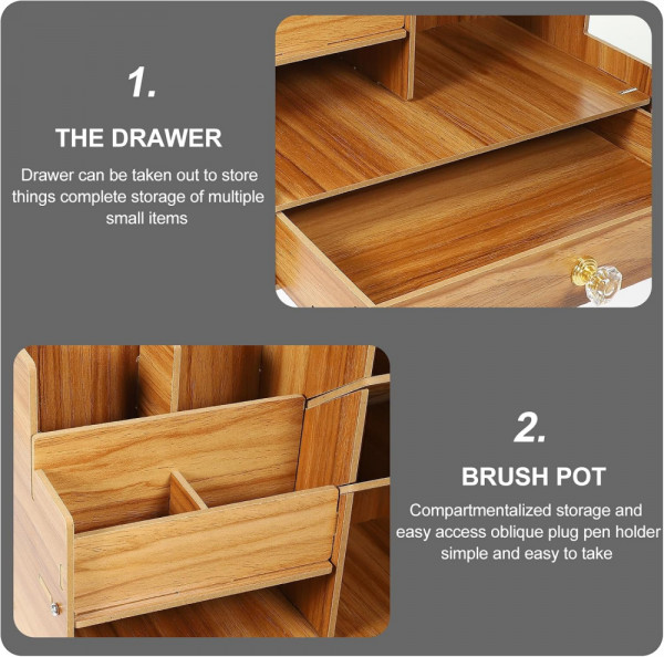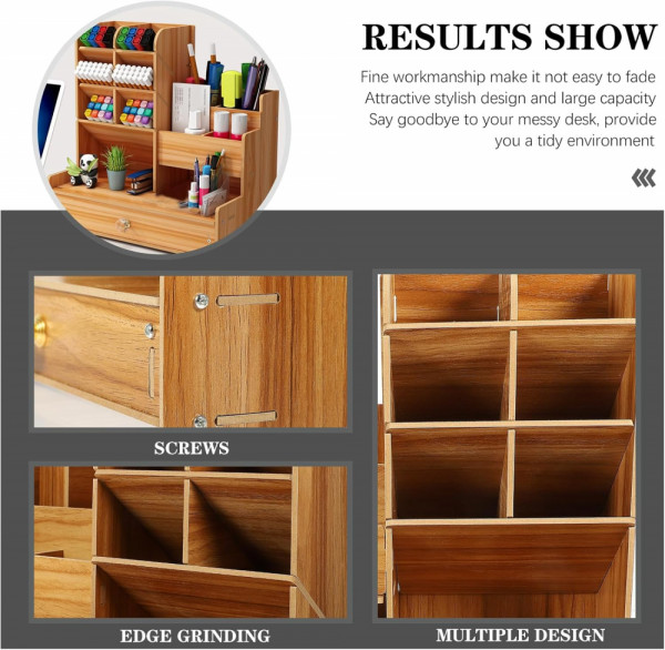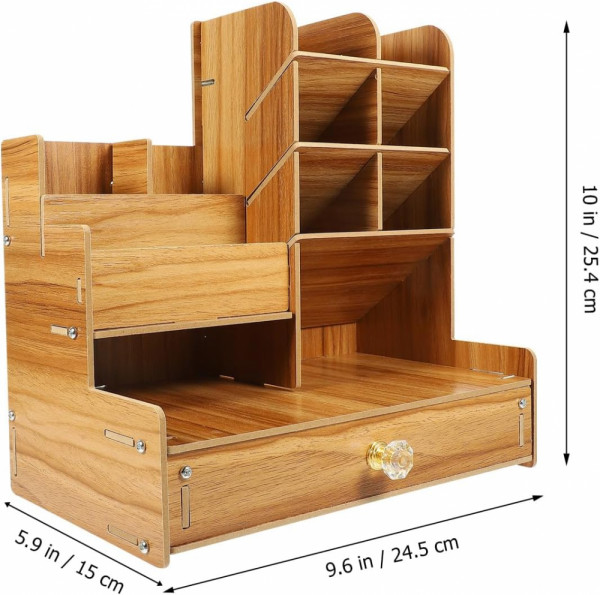 Подреди работното си пространство с елегантност! Този дървен многофункционален органайзер е изработен от висококачествен плътен материал, устойчив на износване, и е идеален за учители, ученици, офис служители или всеки, който иска подредено и уютно бюро.