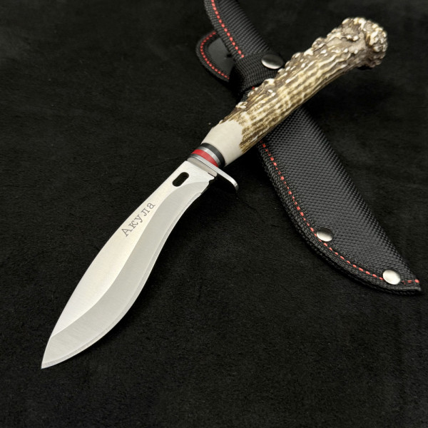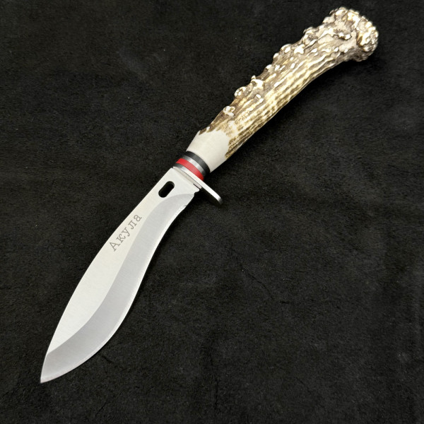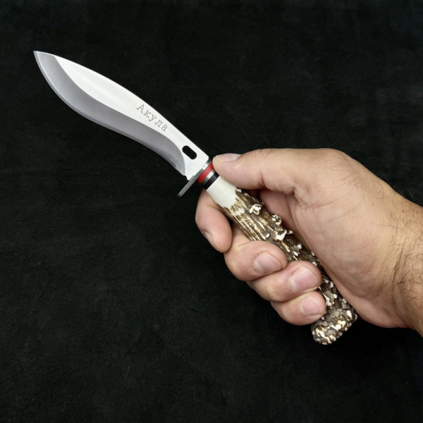 Руски ловен нож АКУЛА, трапер кукри, стомана 65х13, дръжка еленов рог