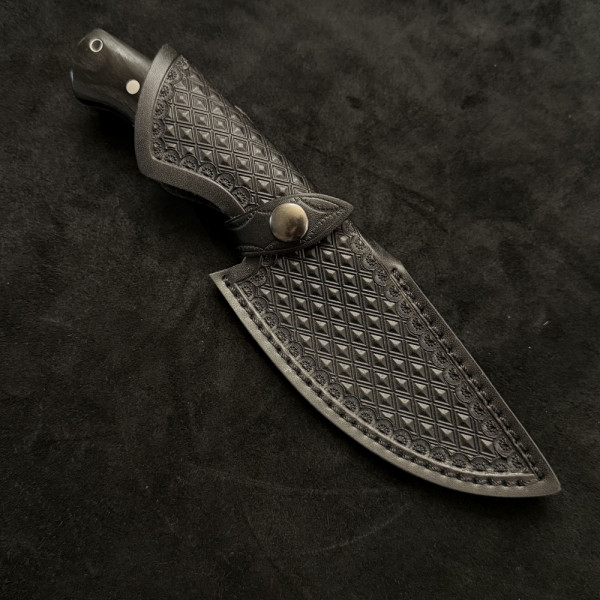 Руски ловен нож ОХОТНИК, фултанг стомана 65х13, кожена кания