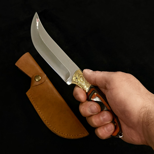 Руски ловен нож ОХОТНИК Ориент 354, фултанг стомана 9Cr13Mov, кожена кания
