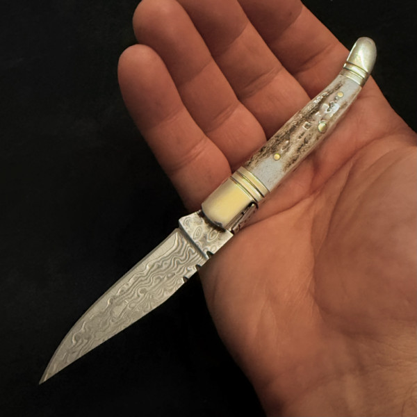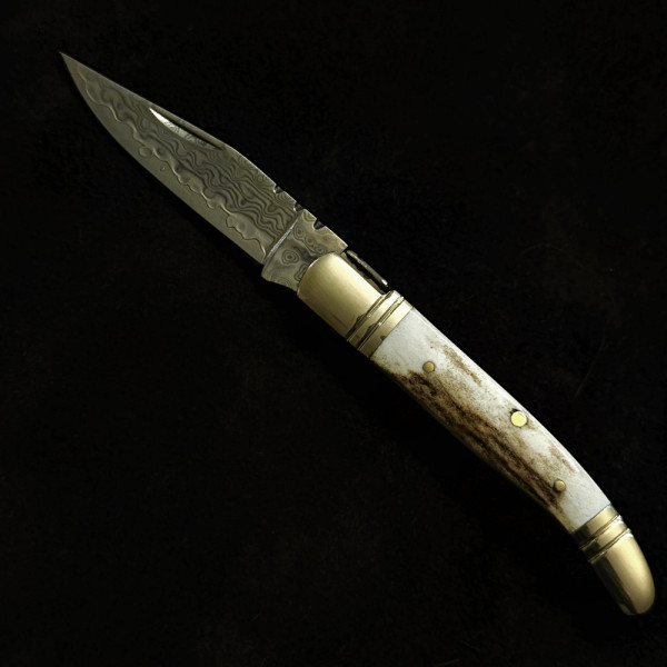 Сгъваем немски ловен нож Der HUNT МК-13 DEER COMPACT, дамаска стомана VG10/69L, дръжка от еленов рог