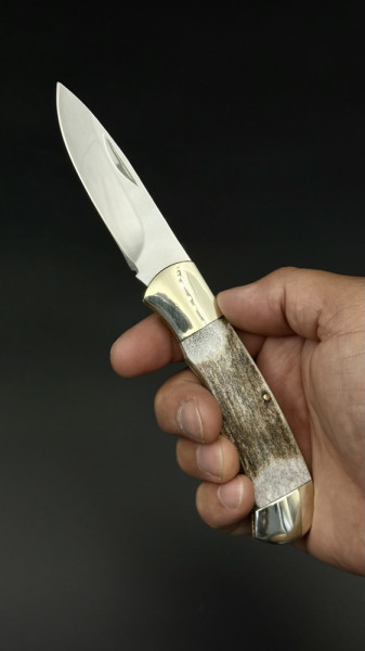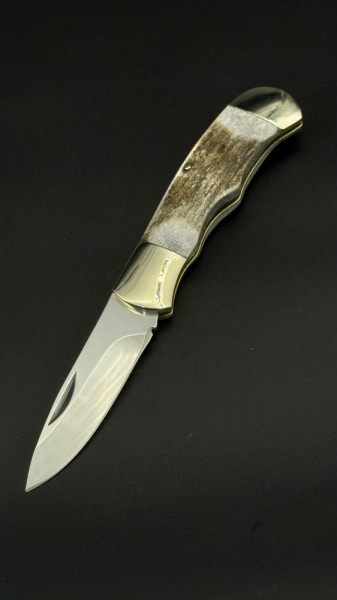 Сгъваем немски ловен нож Der HUNT МК-2, стомана 9Cr13, месинг и чирени еленов рог