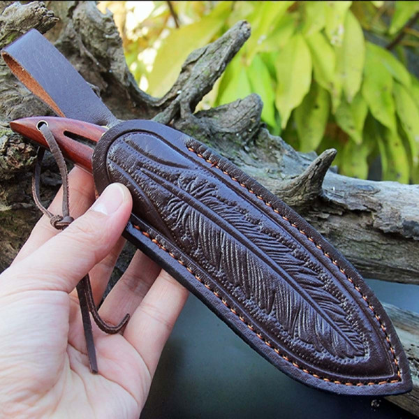 Специален дизайнерски ловен нож LEAF HUNTER, фултанг, с кания и дървена дръжка - чудесен подарък за ценители