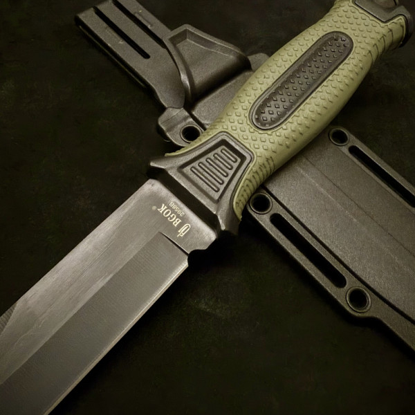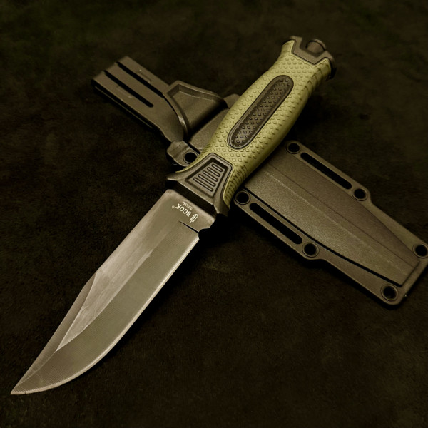 Тактически нож BGOK 2958B GREEN, твърда кания за колан, стомана 420, ловен нож