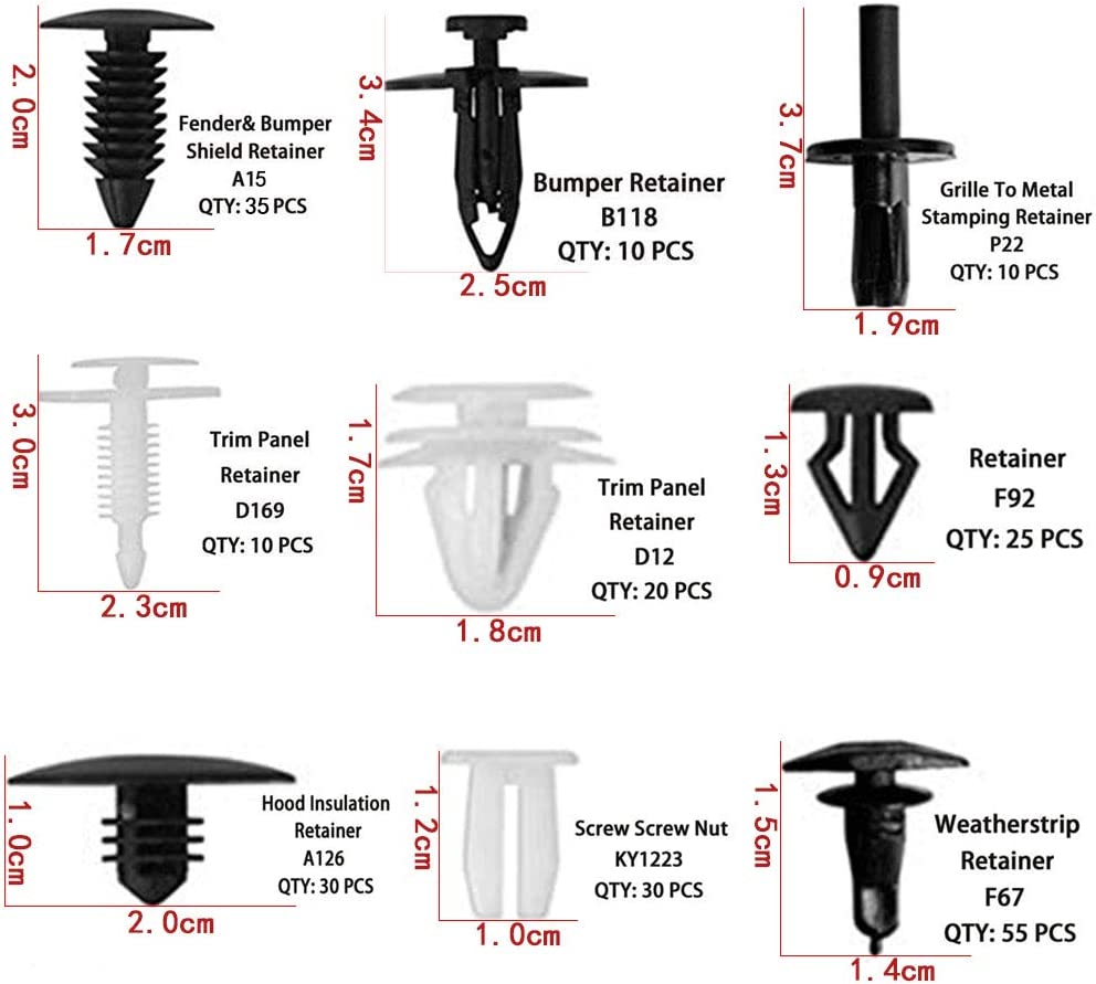 Универален комплект от 421 броя фиксиращи авто клипсове закопчалки копка - щипка за кори лайсни панели табло и др. със инструмент за демонтаж