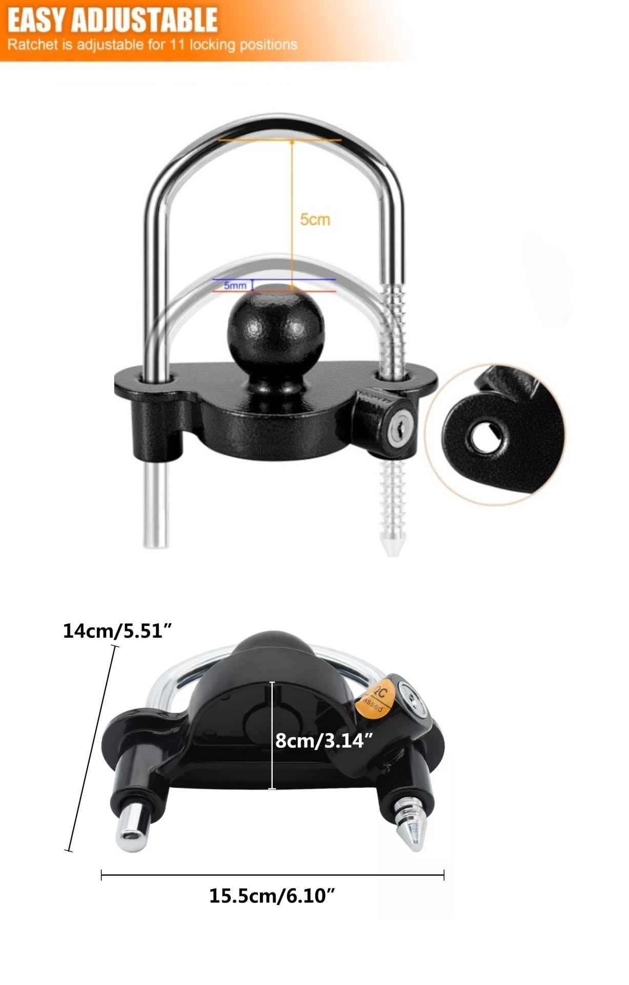 Универсален катинар за теглич с топка, висока степен на сигурност – За каравани и ремаркета