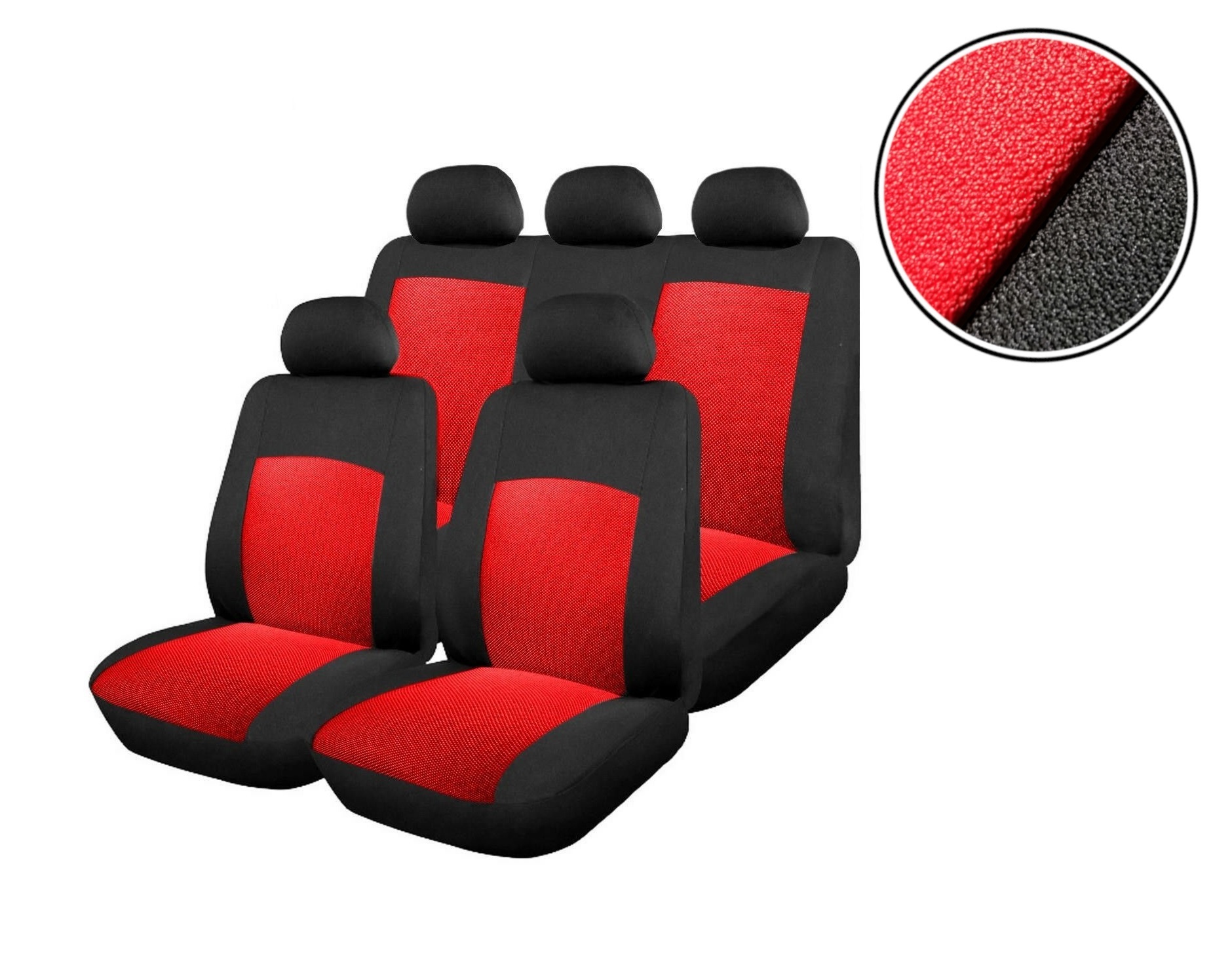 Универсален комплект тапицерия (калъфи) за седалки - черна с червено